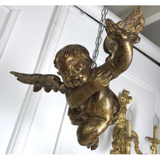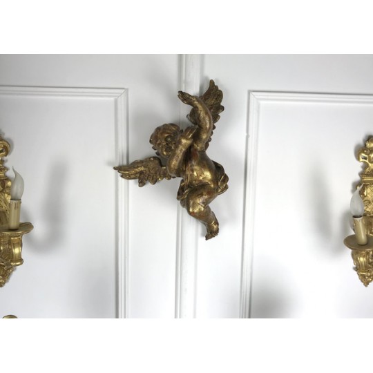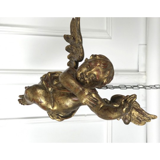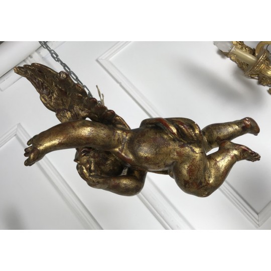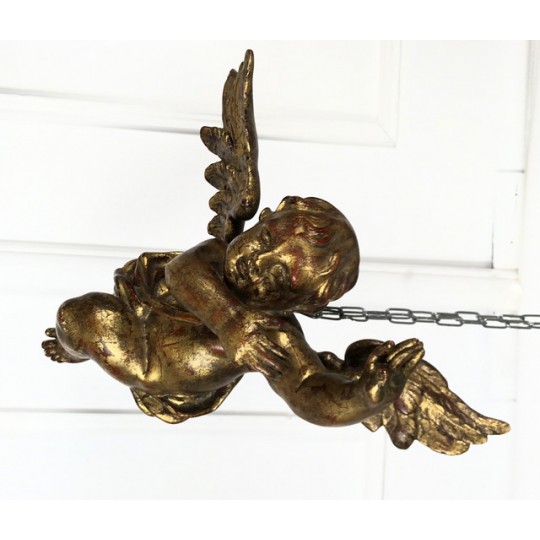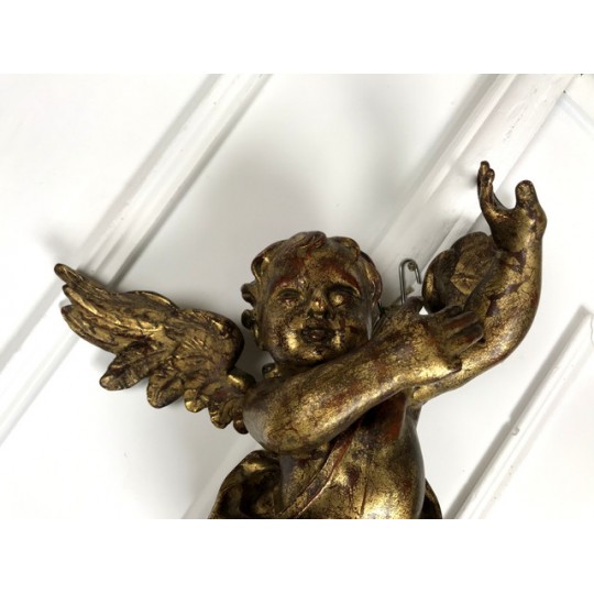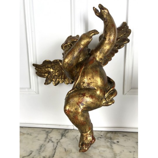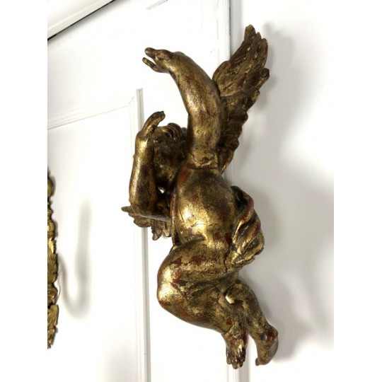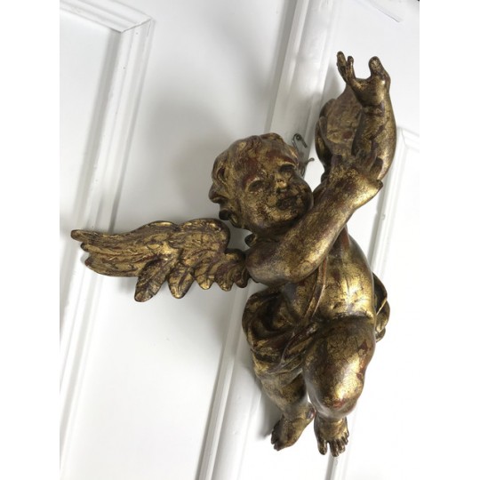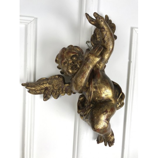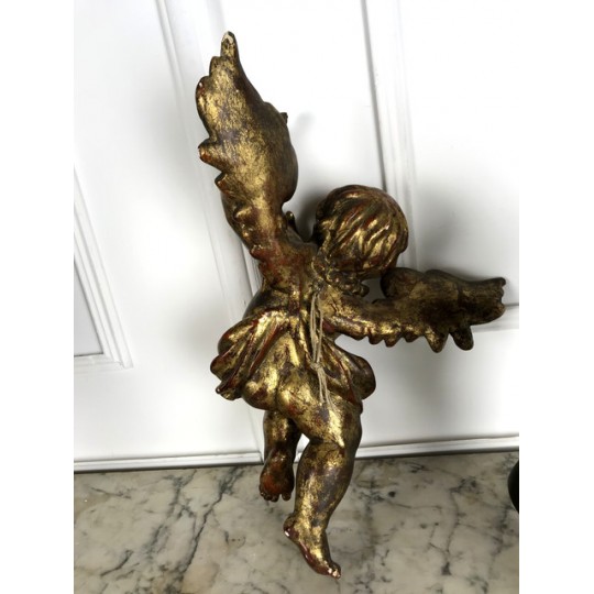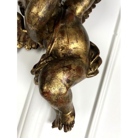 Patinated terracotta cherub with gold leaf to hang. 1920 production