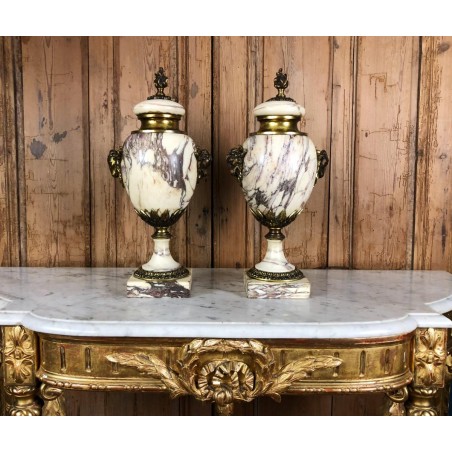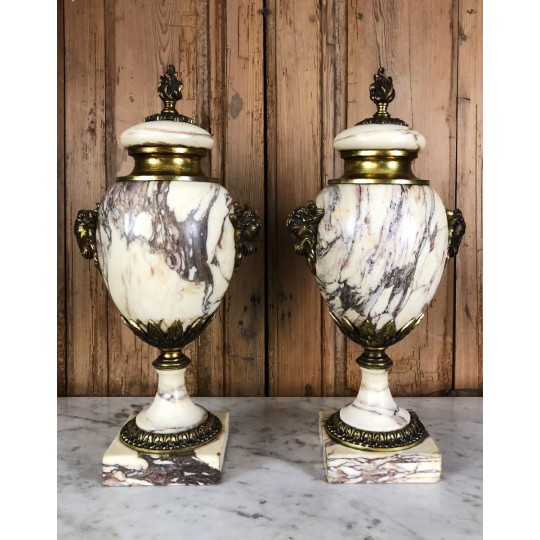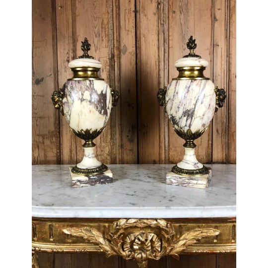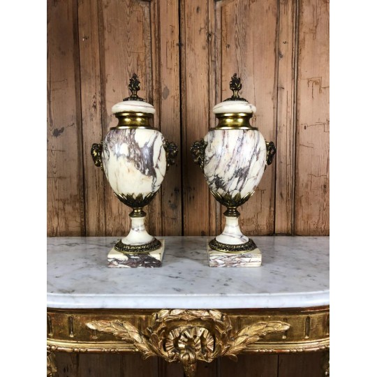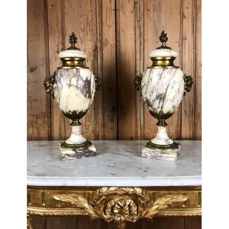 Pair of marble casseroles mounted in gilded bronze, 19th century