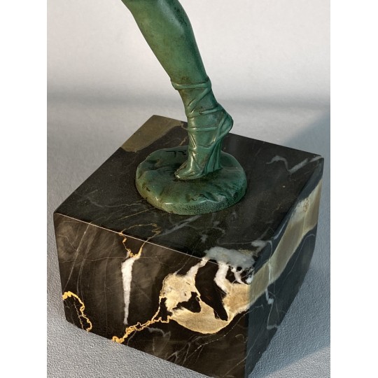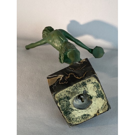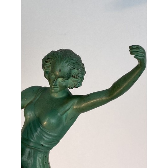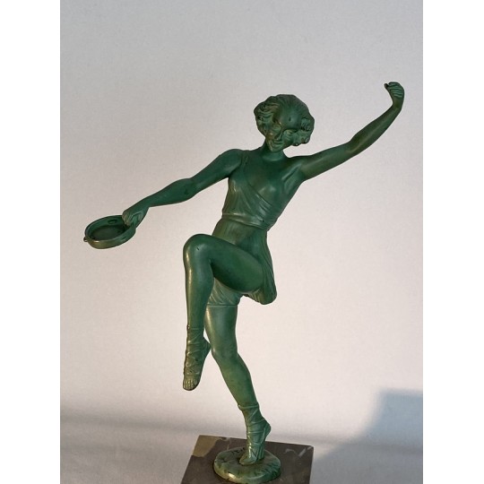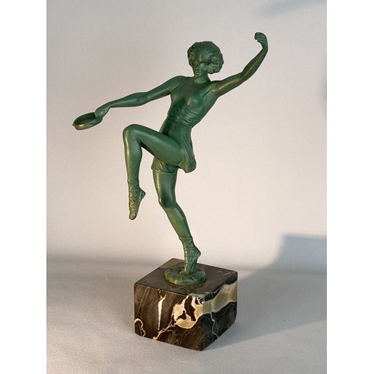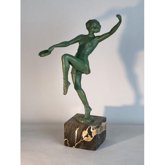 Statue signed Le Faguays P. / Fayral (1892-1962) "La danseuse au tambourin" and was usually edited by Max Le Verrier. Patinated spelter proof on a marble base.