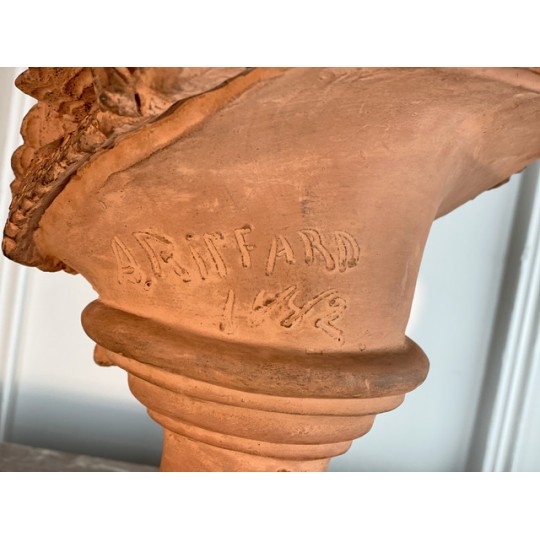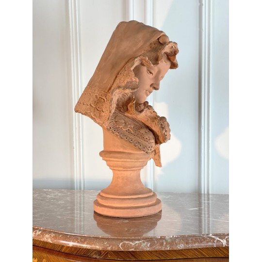 Terracotta bust signed "Albert Riffardé (1859-1915), bust of a woman on a pedestal