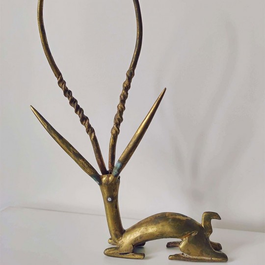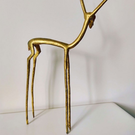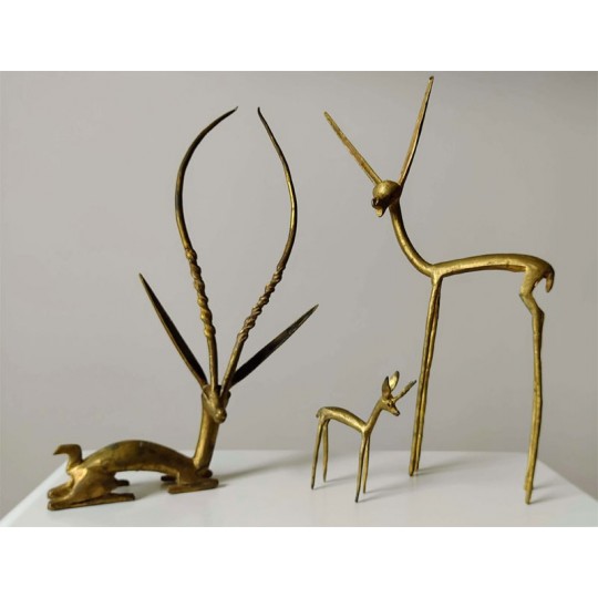 Lot of 3 bronze antelopes of various sizes and attitudes around 1950
