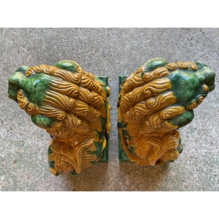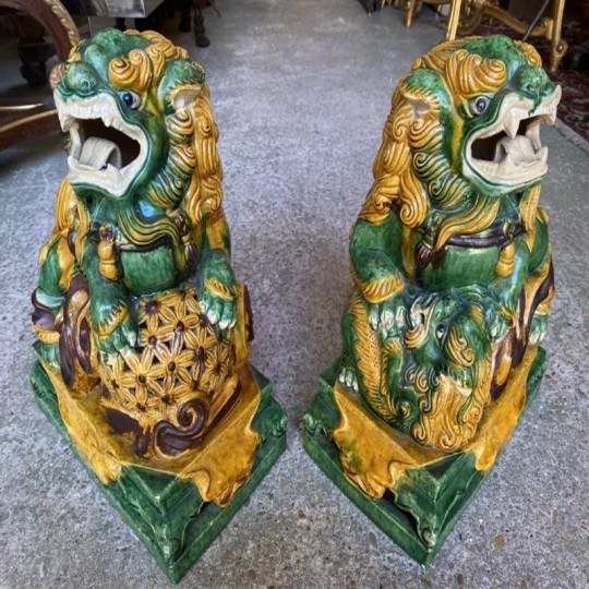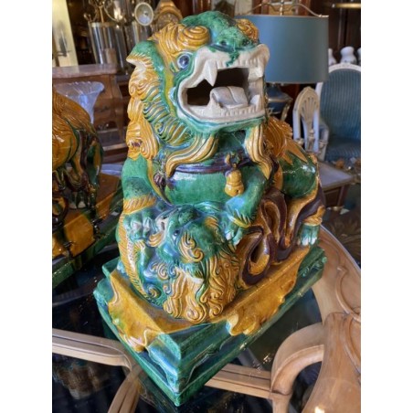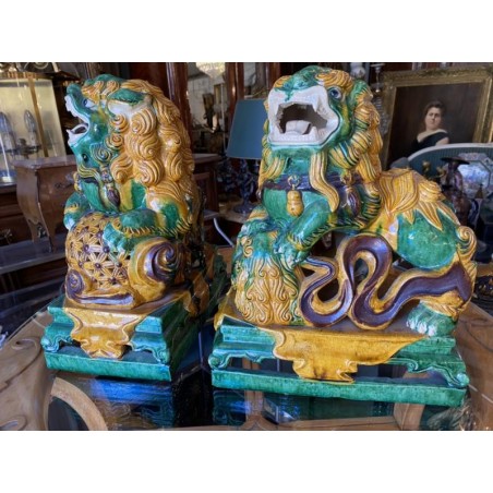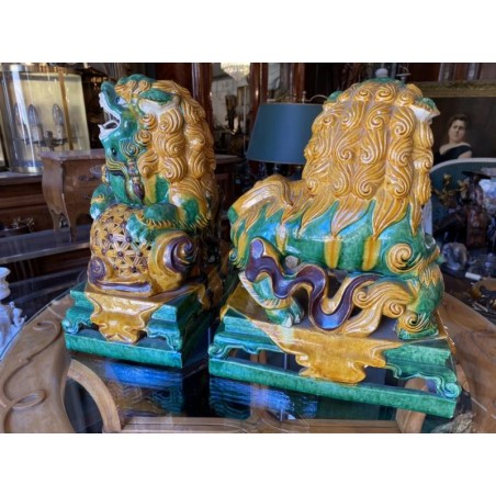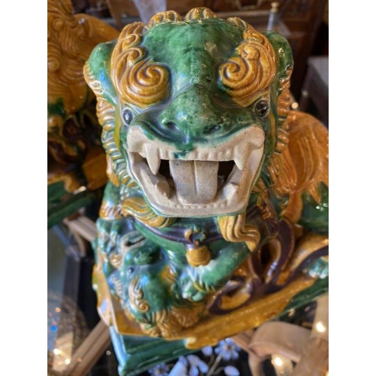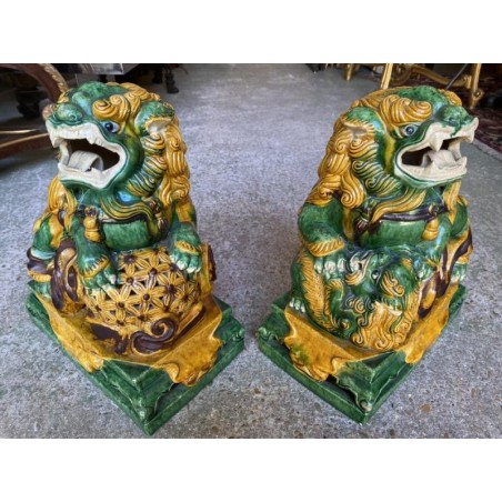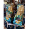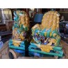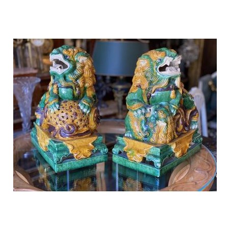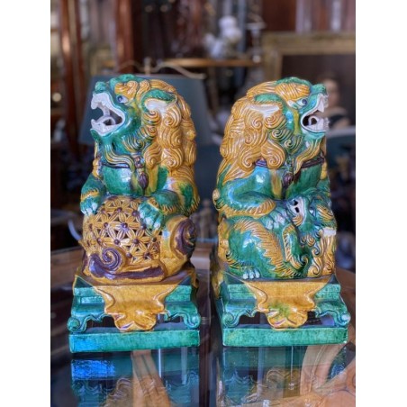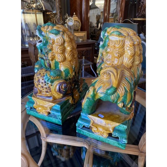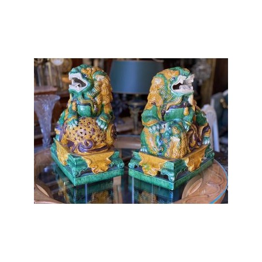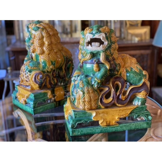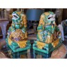 Beautiful pair of glazed terracotta pho dogs, works from the second half of the 20th century. Very decorative!