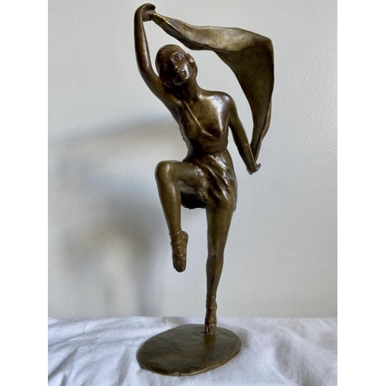 Paul de BOULONGNE, born in Marseille in 1863, artist, sculptor, succumbed to the bewitchment of the dancer and reproduces her most sensitive expressions in statuettes. He worked from a sketch modeled with plaster, produced a wax model, and generally distributed it by means of bronze proofs. Few of his works in porcelain biscuit. The triumph of the Star was to dance alone on stage. This is how La Pavlova entered the legend, in which Boulongne participated through his works. He was a great success, and the dissemination of his works was extended by the postcard, reproduced in collotype at Moreau frères 159 boulevard Saint Germain in Paris. Member of the National Fine Arts in 1912, he died in 1938, 7 years after his favorite model, his muse, the Pavlova.