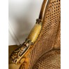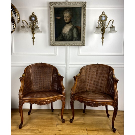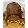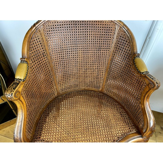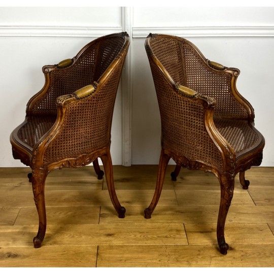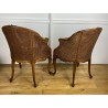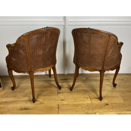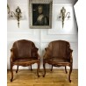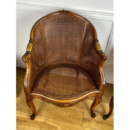 Pair of walnut armchairs with double cane, and Louis XV style leather cuffs, year 1900
