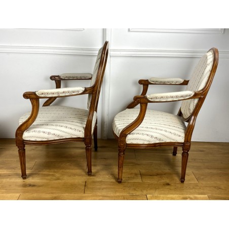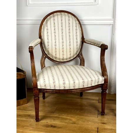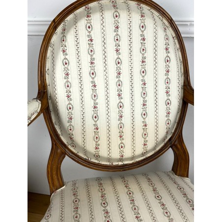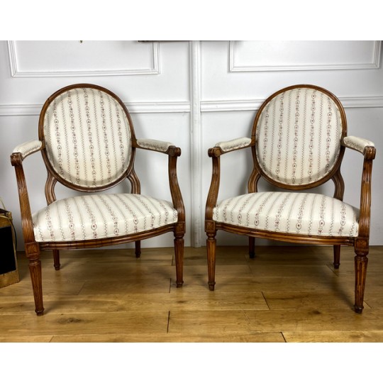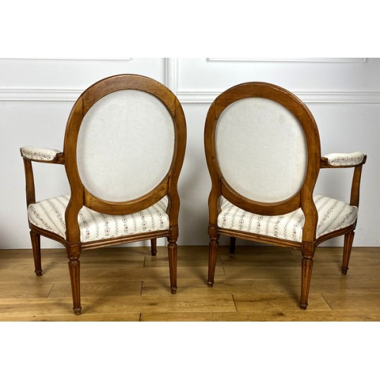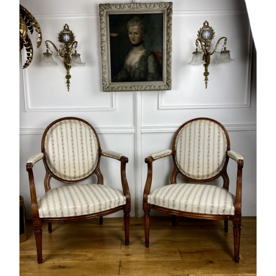 Pair Of Louis XVI Period Armchairs With Medallion Backrest With New Tapestry