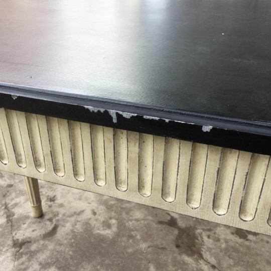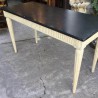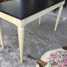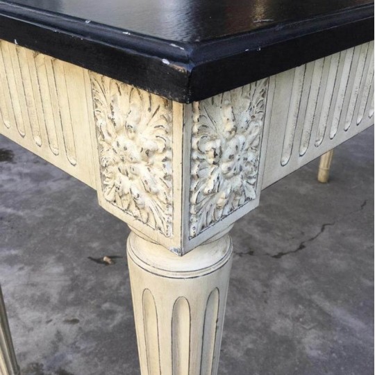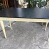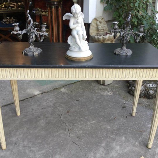 Large and elegant Louis XVI style console in white / beige painted wood and black top. The feet and the crossbars are fluted in double face. Very decorative manufacturing of the 1980s