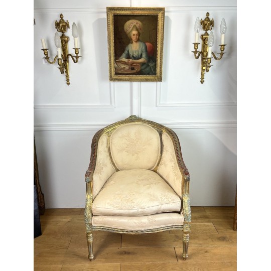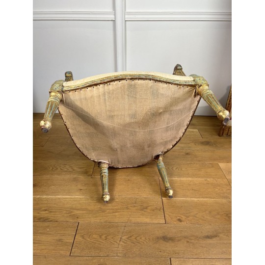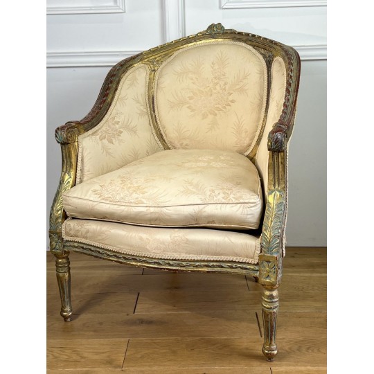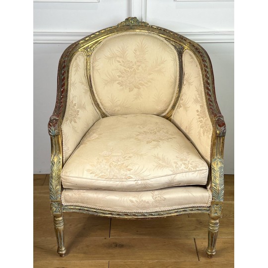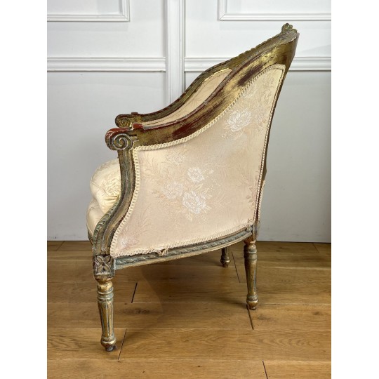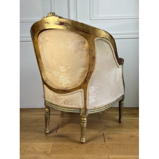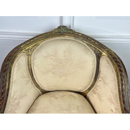 Antique shepherdess armchair in gilded and carved wood, Louis XVI Style