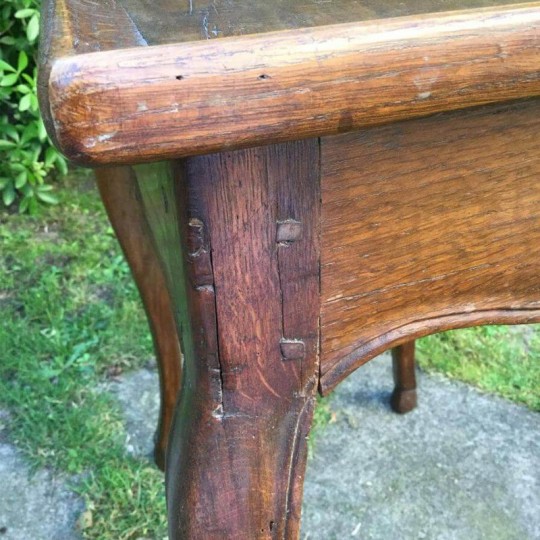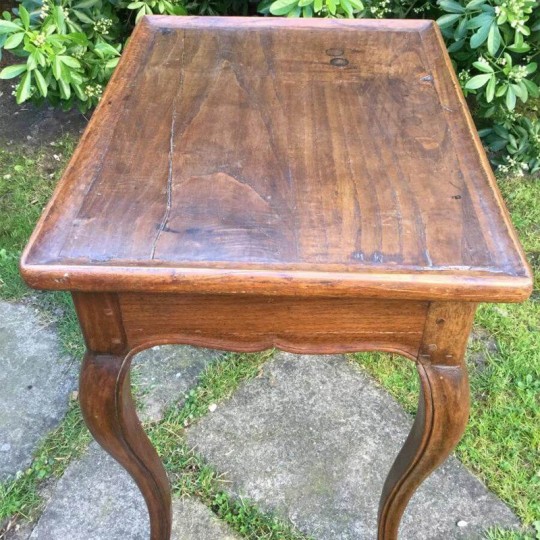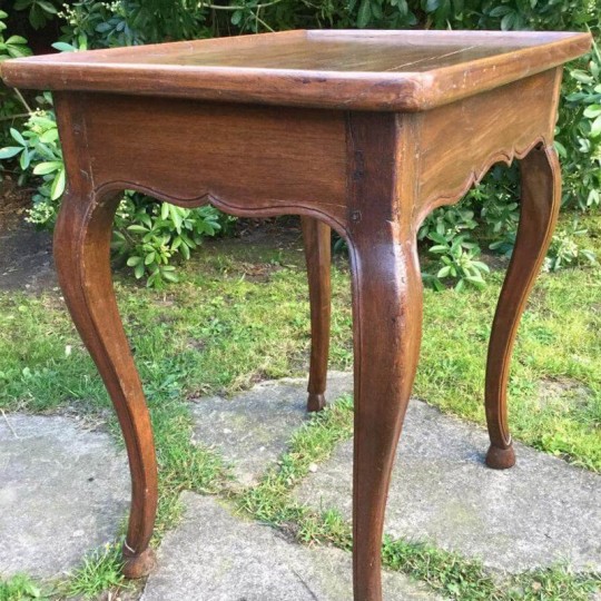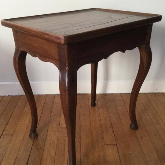 Pretty small cabaret table from the Louis XV period, bowl tray, it rests on 4 arched doe legs. It is made of natural wood, the feet are walnut and everything else is oak.