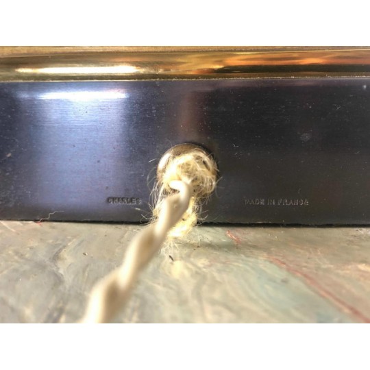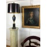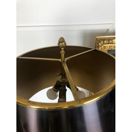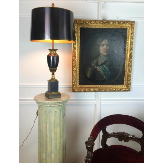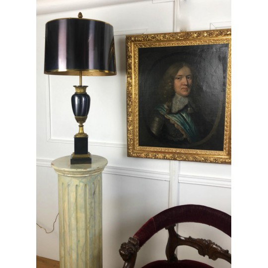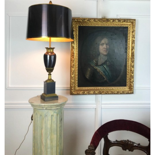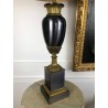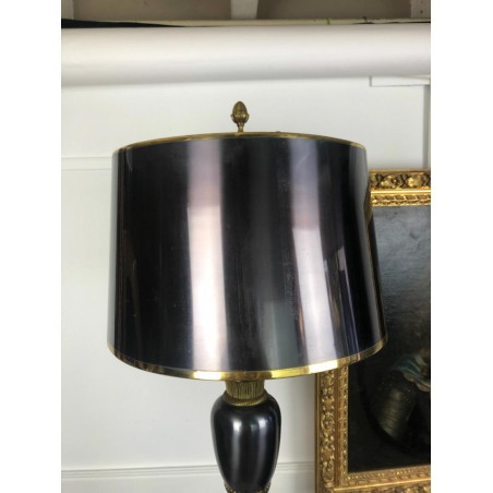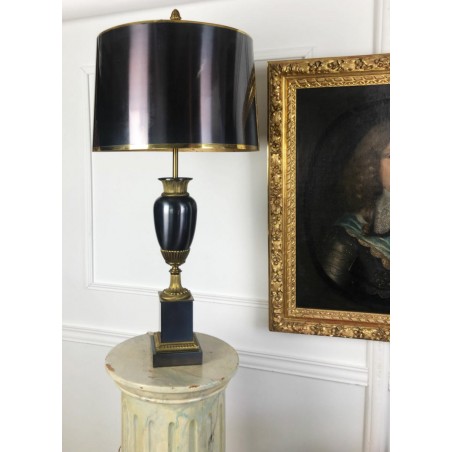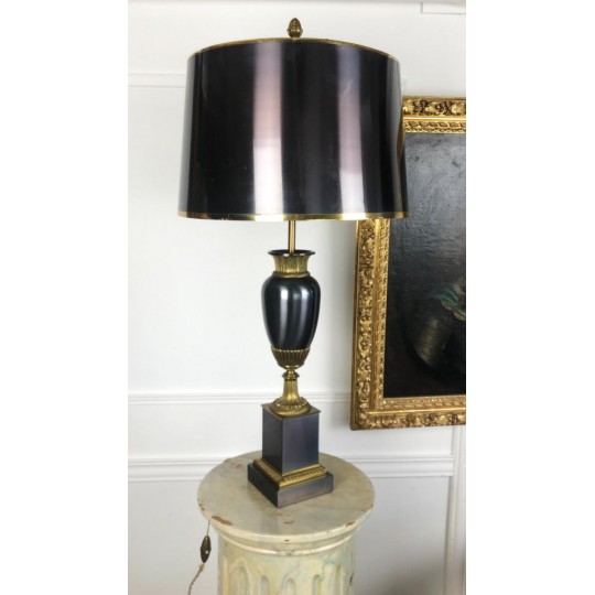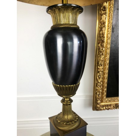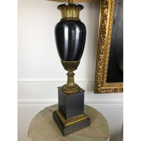 Maison Charles (signed) Bronze lamp decorated with a pedestal amphora on a base (Water leaf decoration), metal shade.