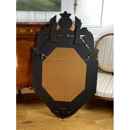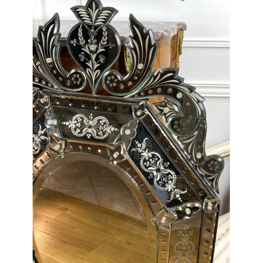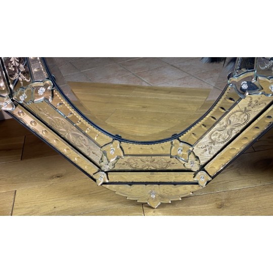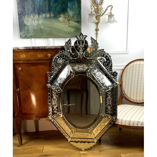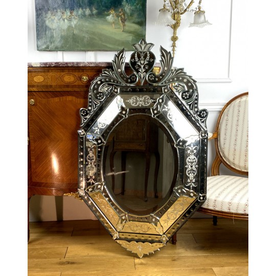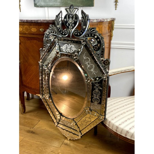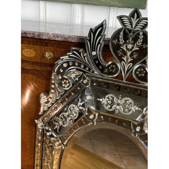 Venetian mirror with bead from the early twentieth in bevelled and engraved glass, Art Deco period