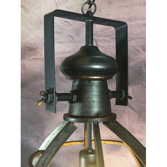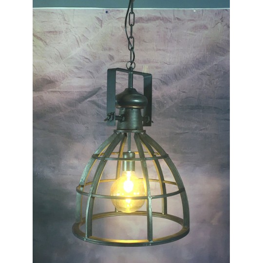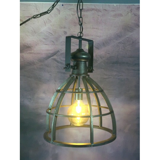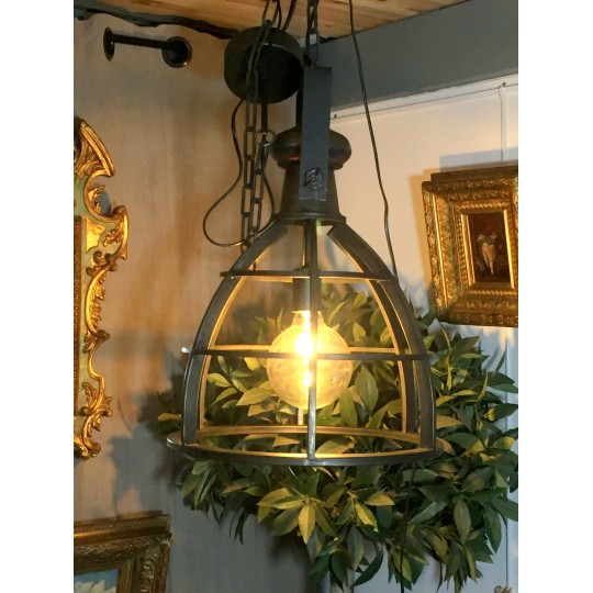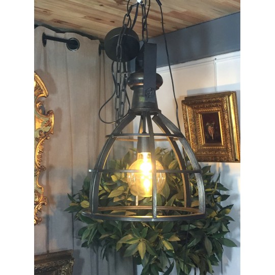 Lanterne / suspension ajourée façon atelier style industriel en fer. 80cm de hauteur avec la chaîne