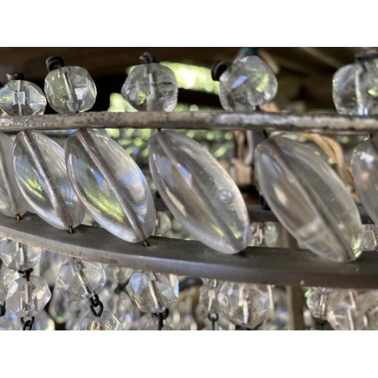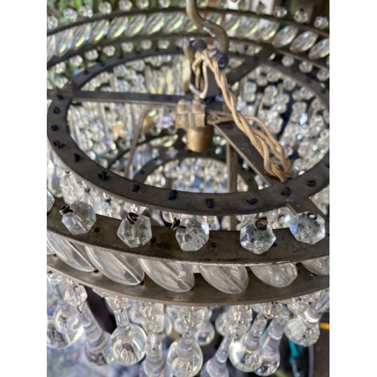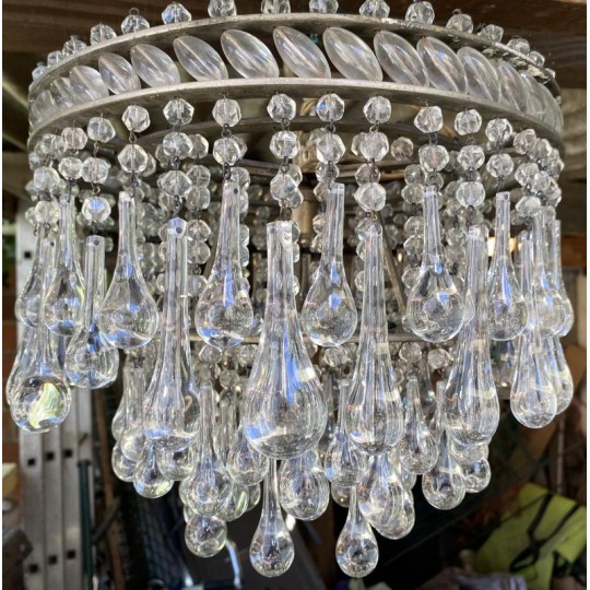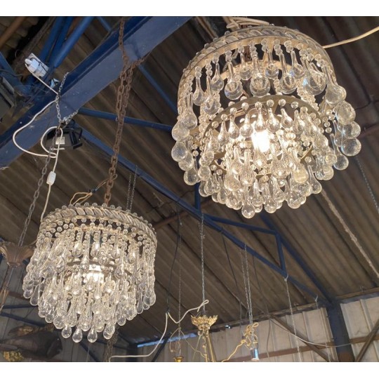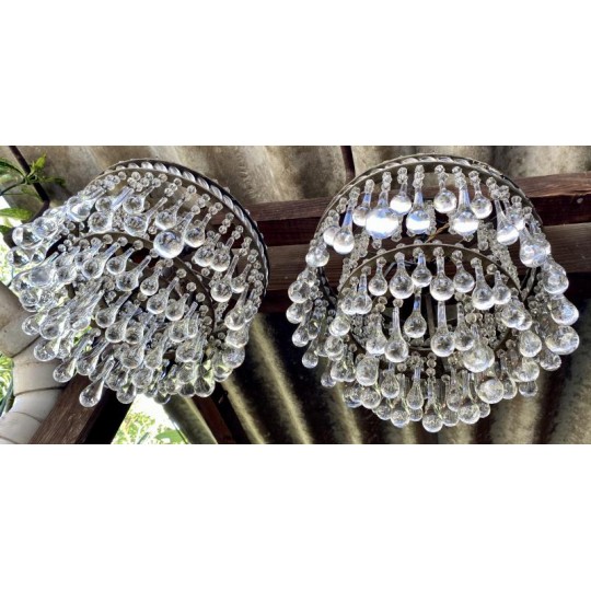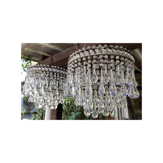 Paire de plafonniers richement habillés par une cascade de pampilles en cristal formant des gouttes d'eau,
