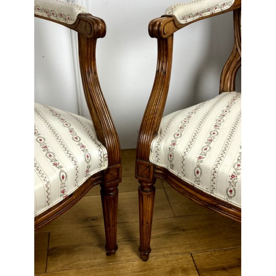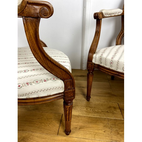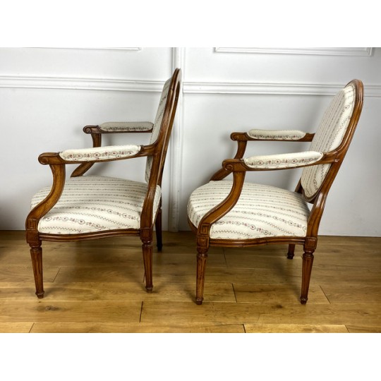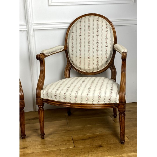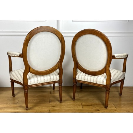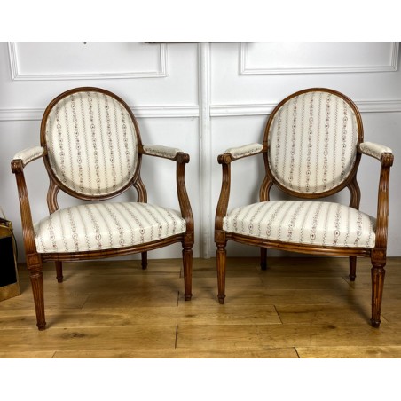 Paire De Fauteuils Epoque Louis XVI à dossier médaillon avec tapisserie neuve
