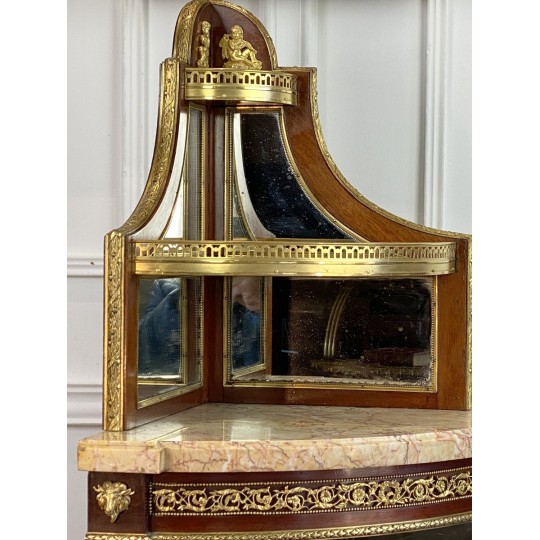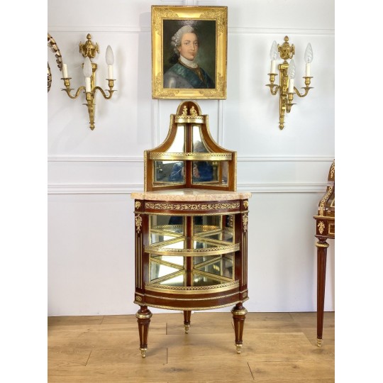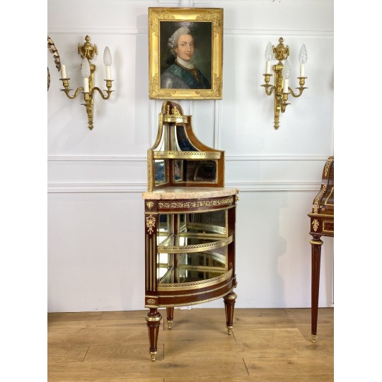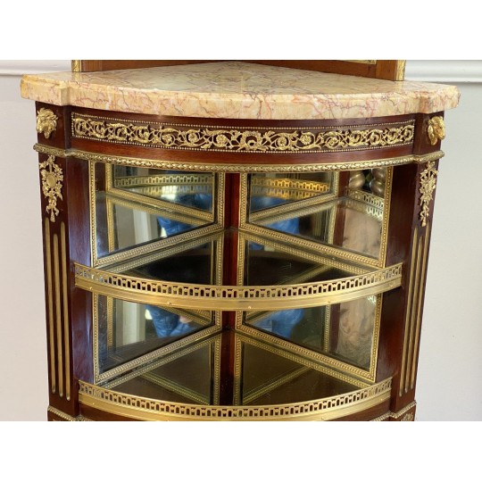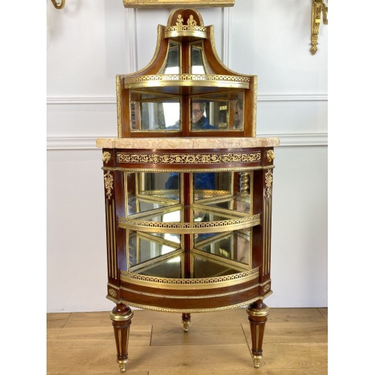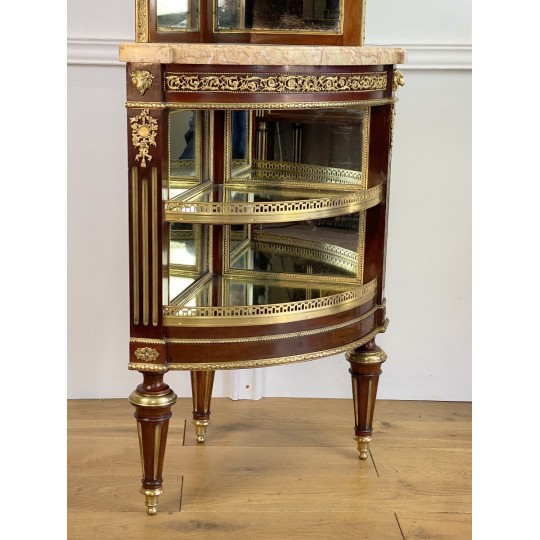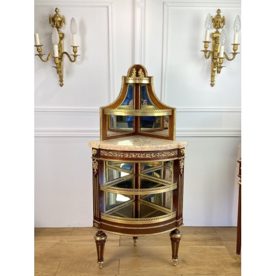 Encoignure attribué à Paul Sormani 1817-1866 en acajou ornée de bronze doré et de miroir à plusieurs étages et un dessus marbre.