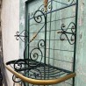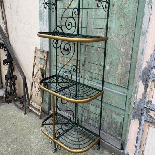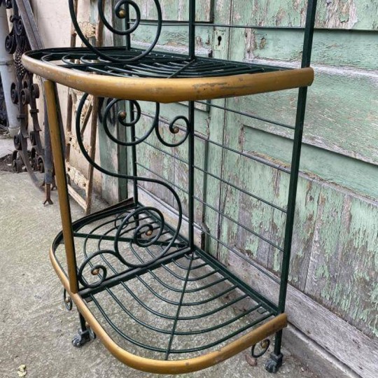 Ravissante grille de boulangerie en fer forgé à décor de volutes, elle repose sur 3 pieds griffes en métal. Ses petites proportions permettent de pouvoir très facilement la placer. Belle fabrication des années 1950.