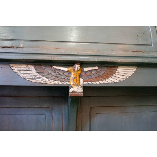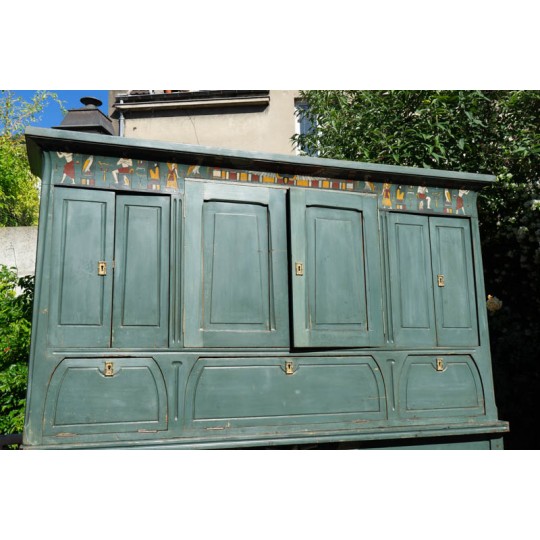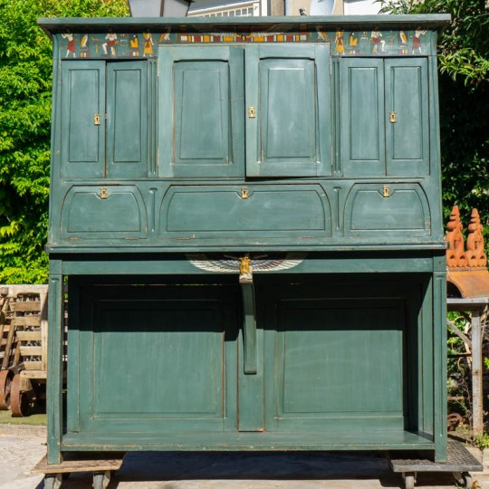 Meuble égyptien de 1900, fabriqué à l'occasion de l'exposition universelle de 1900 dans le cinéma le Louxor à Barbès. En Chêne ou acajou peint. Motif de papyrus sur les portes et orné de cartouches égyptiennes. Travail artisanal remarquable au niveau des détails sur les serrures et charnières.