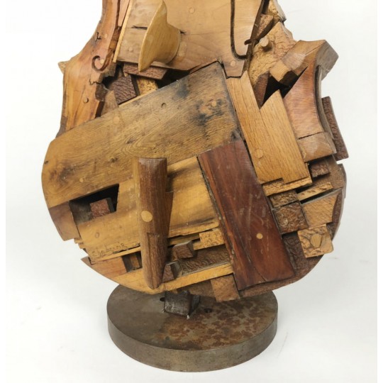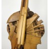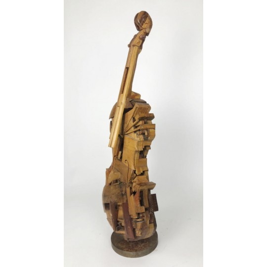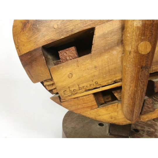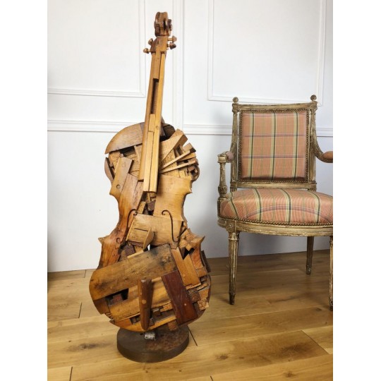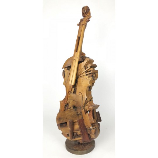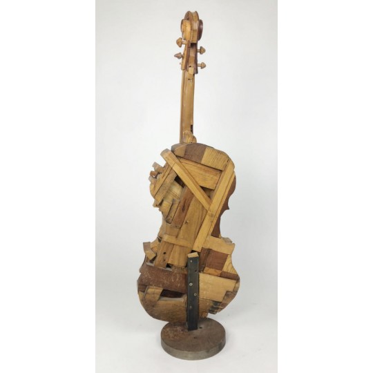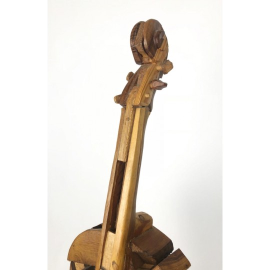 Violon sculpté dans des bois d'essence différents (chêne, merisier, bois exotique etc…) et fixé sur un socle en métal, signé Gilles CHABRERIE