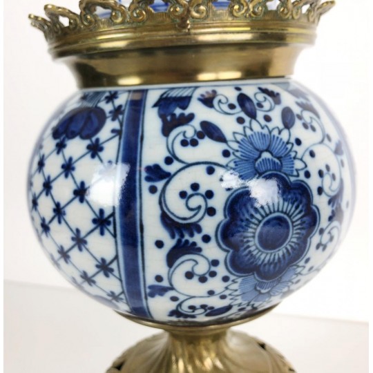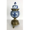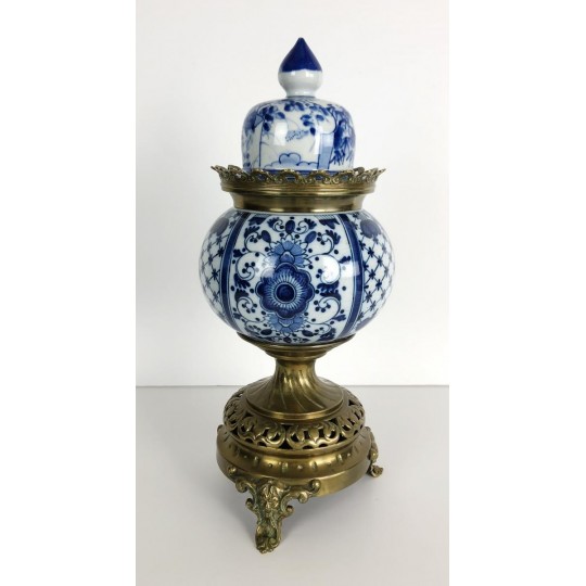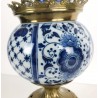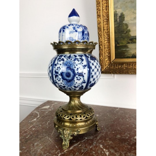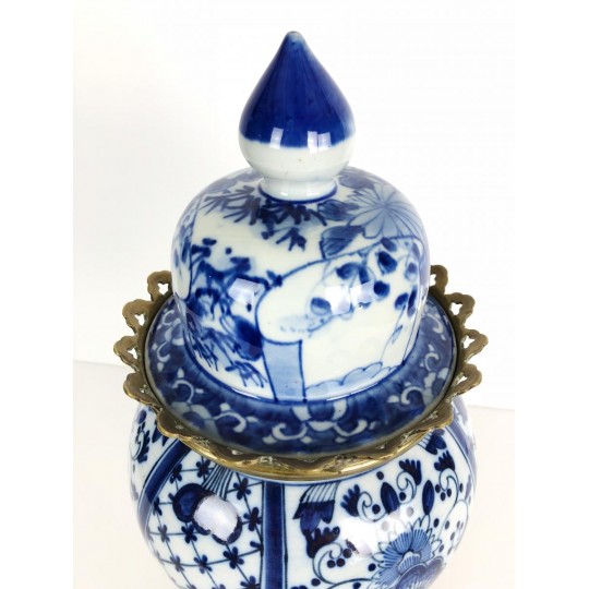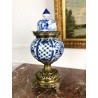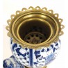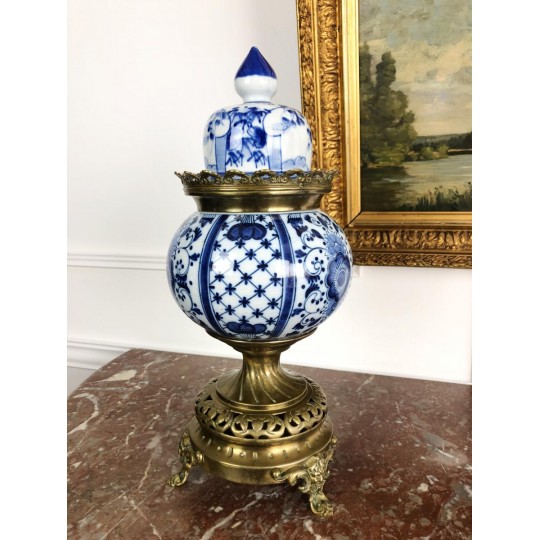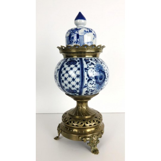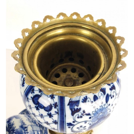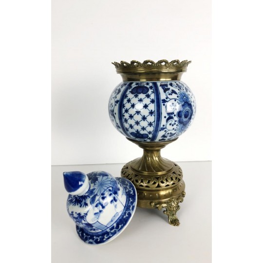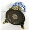 Brûle-encens du 19ème en porcelaine bleu et blanc sur piédouche en bronze.