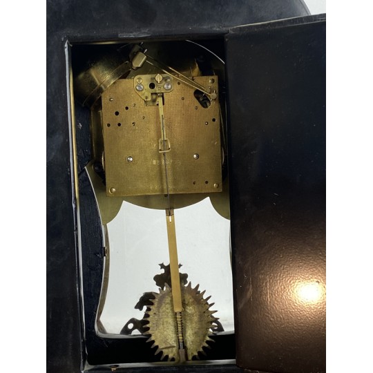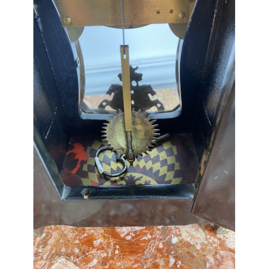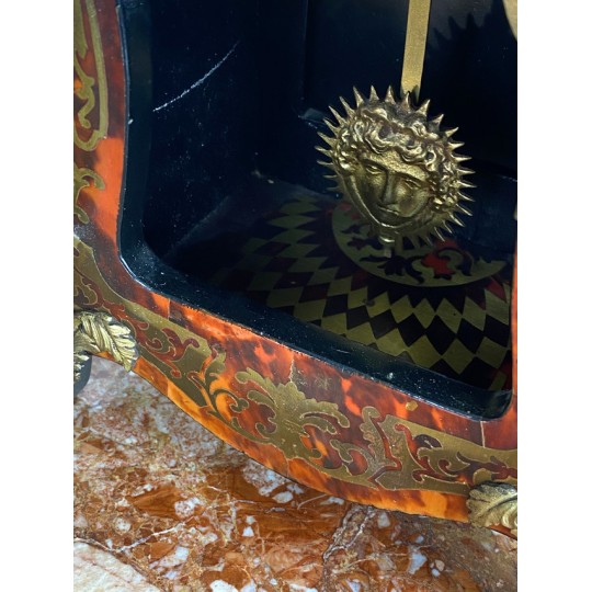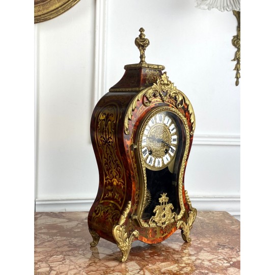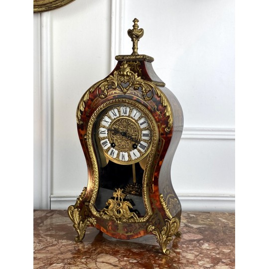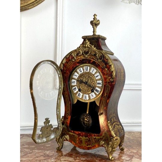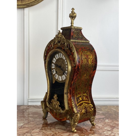 Cartel de forme violonée à poser, en marqueterie dans le gôut de Boule en laiton, à fond rouge, Style Louis XV