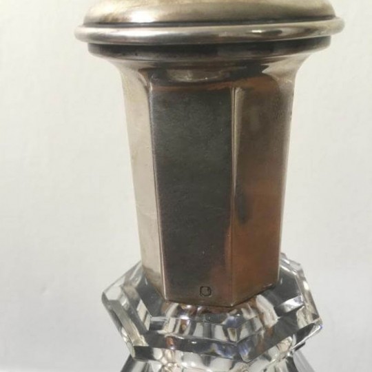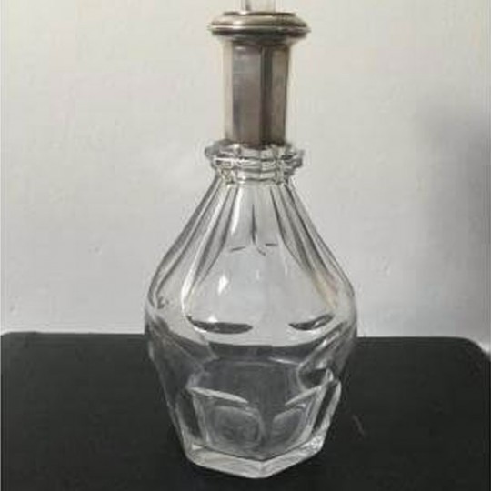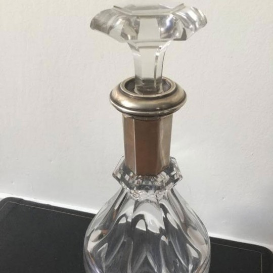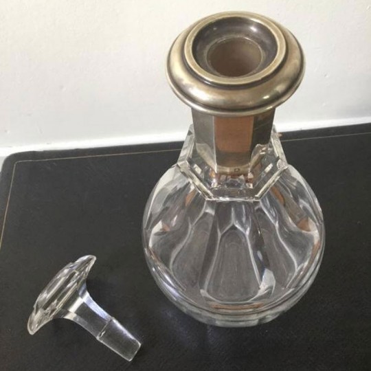 Jolie carafe en cristal de baccarat, modèle Harcourt, cerclage en argent massif, poinçon minerve 1er titre, orfèvre Lagriffoul & Laval (L&L + 3 étoiles)