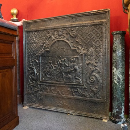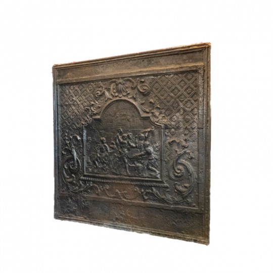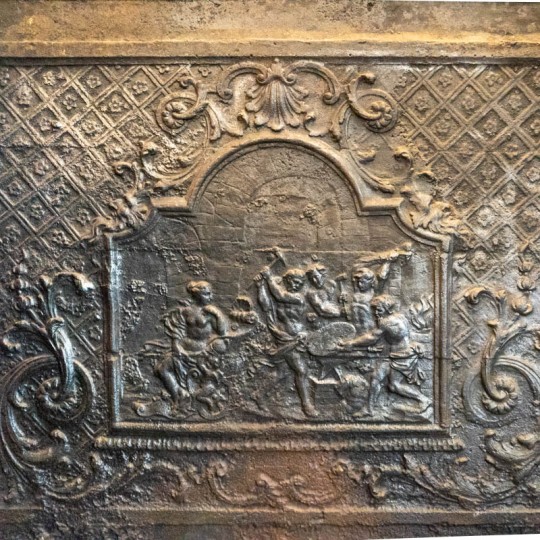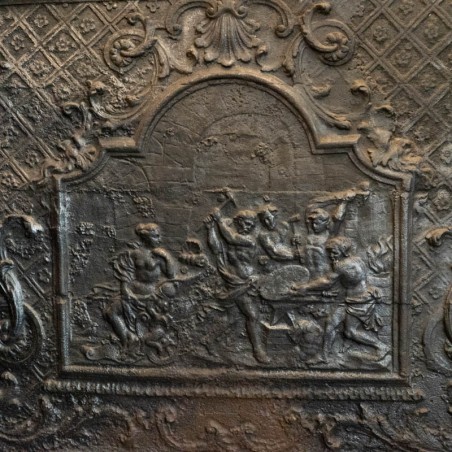Plaque de cheminée 18ème en fonte. Le motif de la forge de Vulcain.